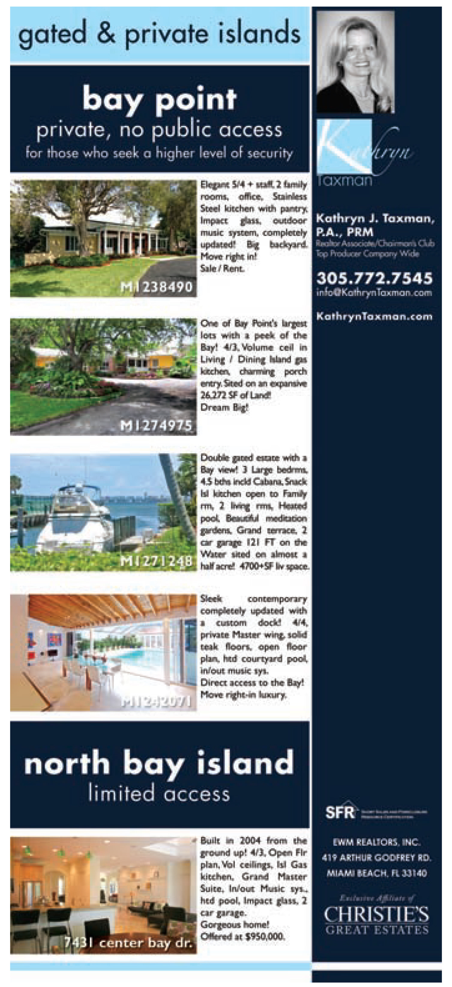 Magazine and newspaper advertisements for Real Estate in South Florida.