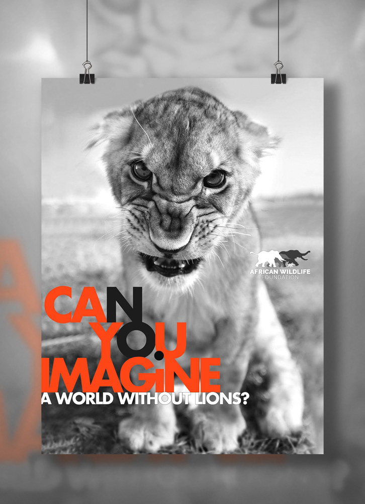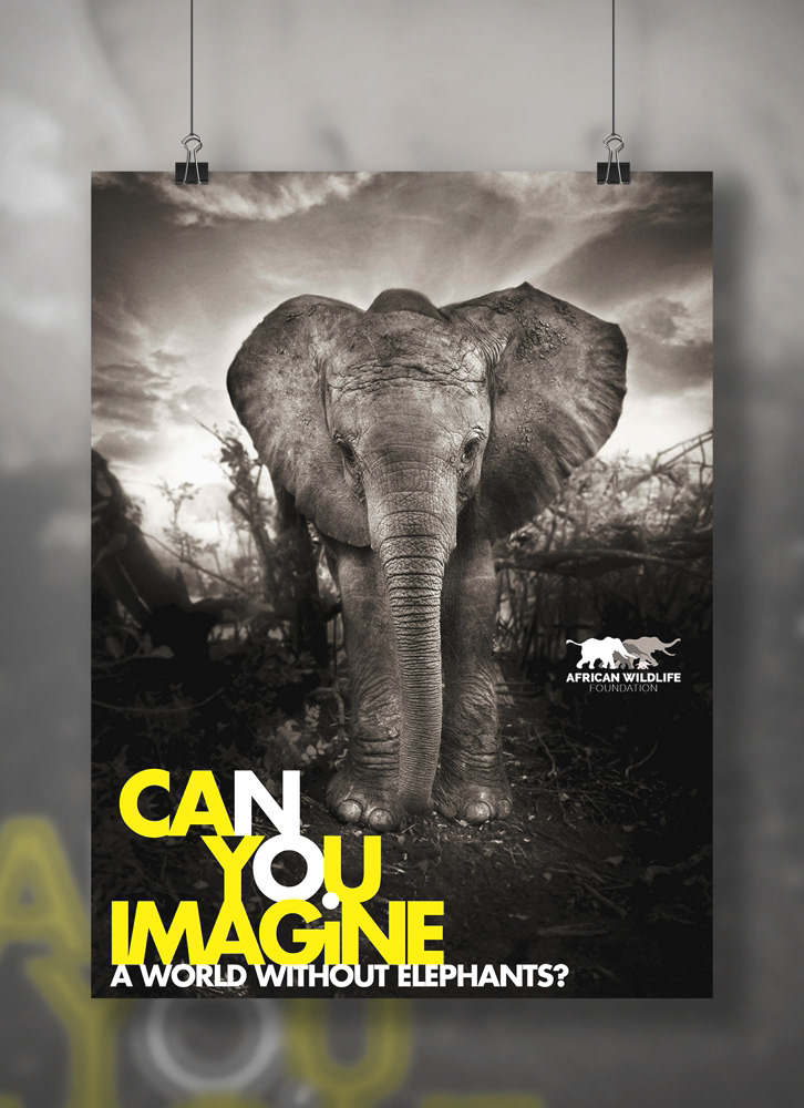 I was tasked with using donated photography from different photographers to create these posters. To benefit the African Wildlife Foundation and to illicit a response to the genocide of these nearly extinct animals in Africa.